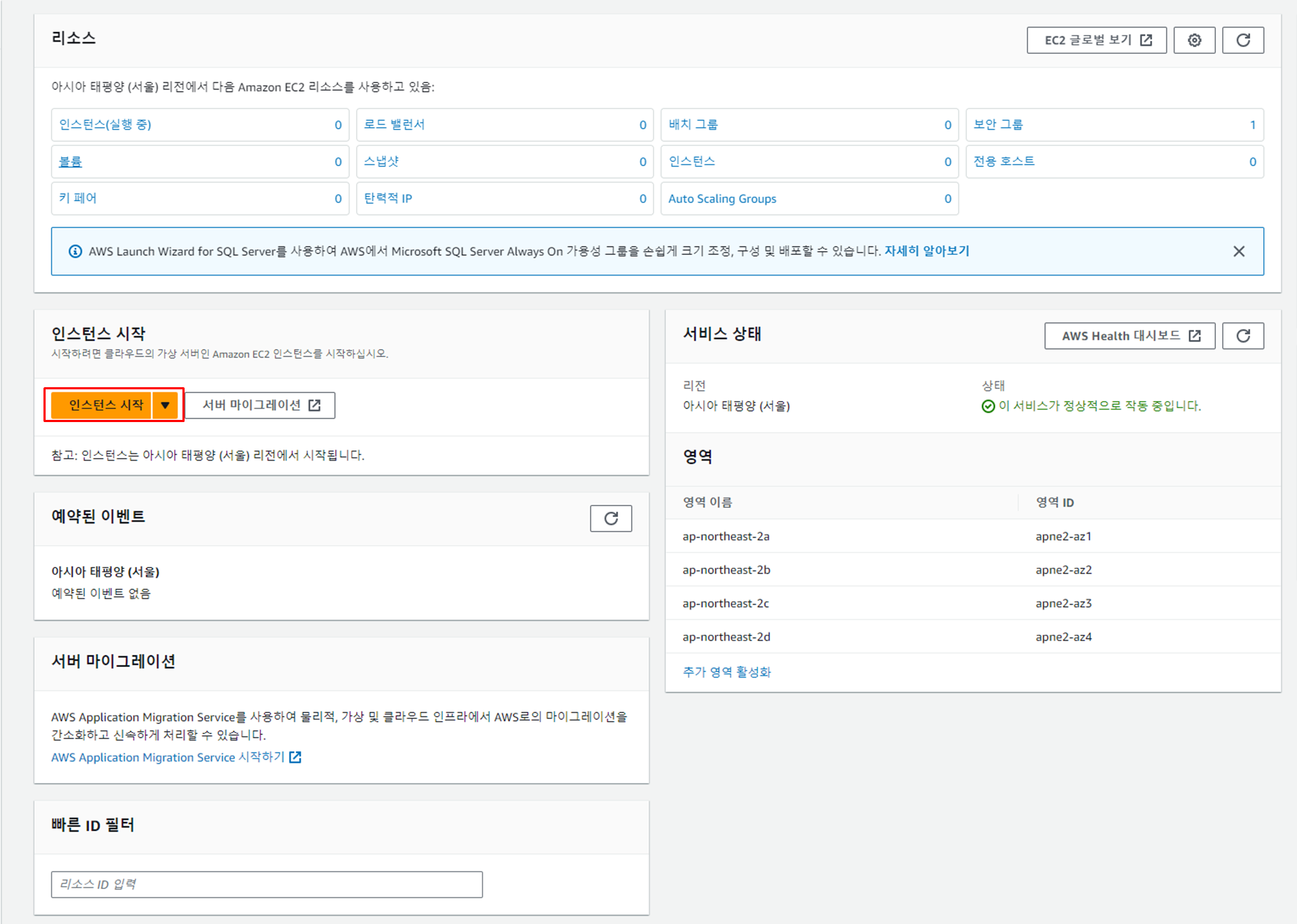 2. 인스턴스 시작 버튼 클릭