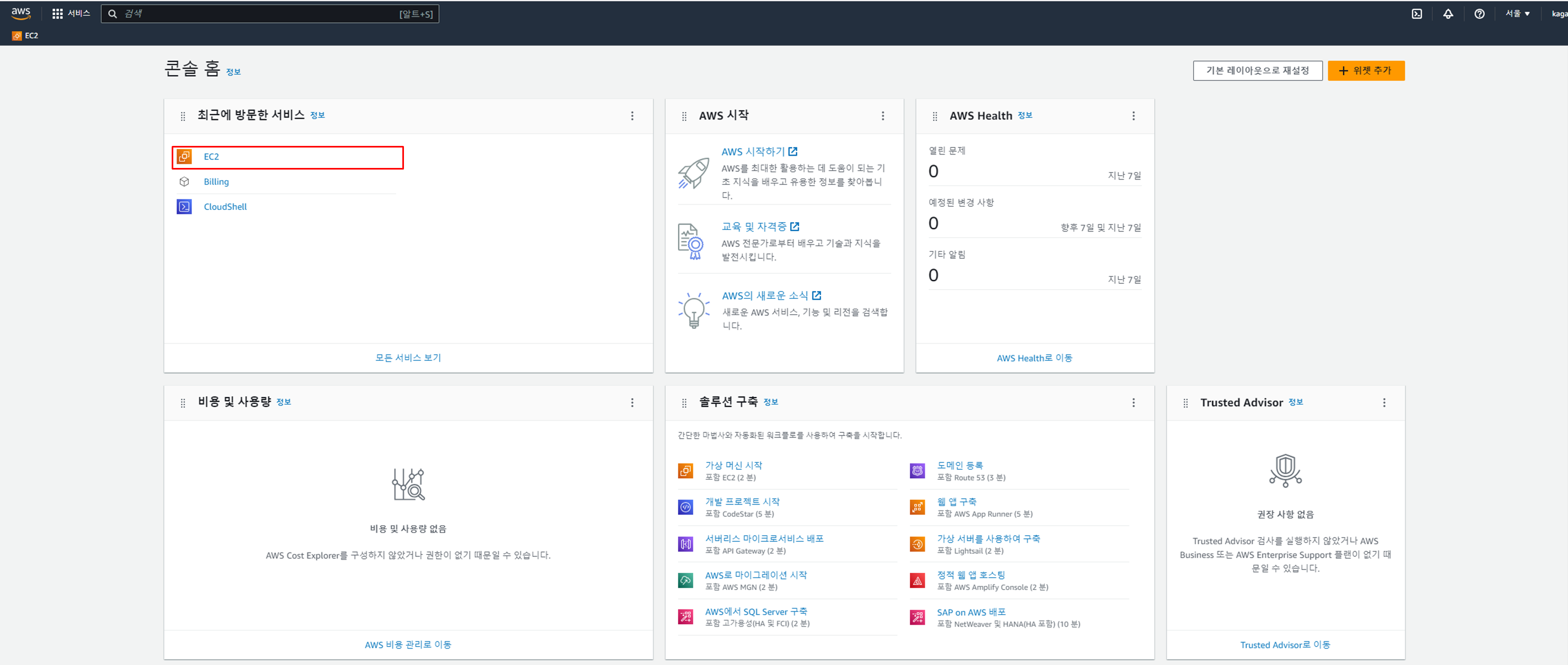 1. 로그인 -> 콘솔 홈에서 EC2 클릭