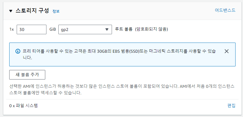 프리티어는 최대 30GB까지 가능하기 때문에 30으로 설정
