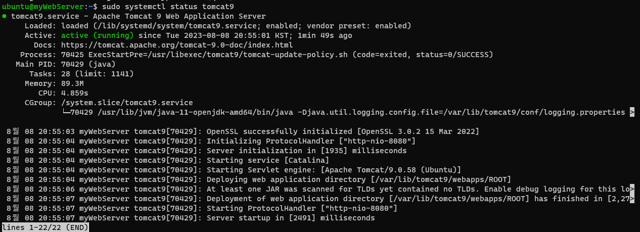 # sudo systemctl start tomcat9